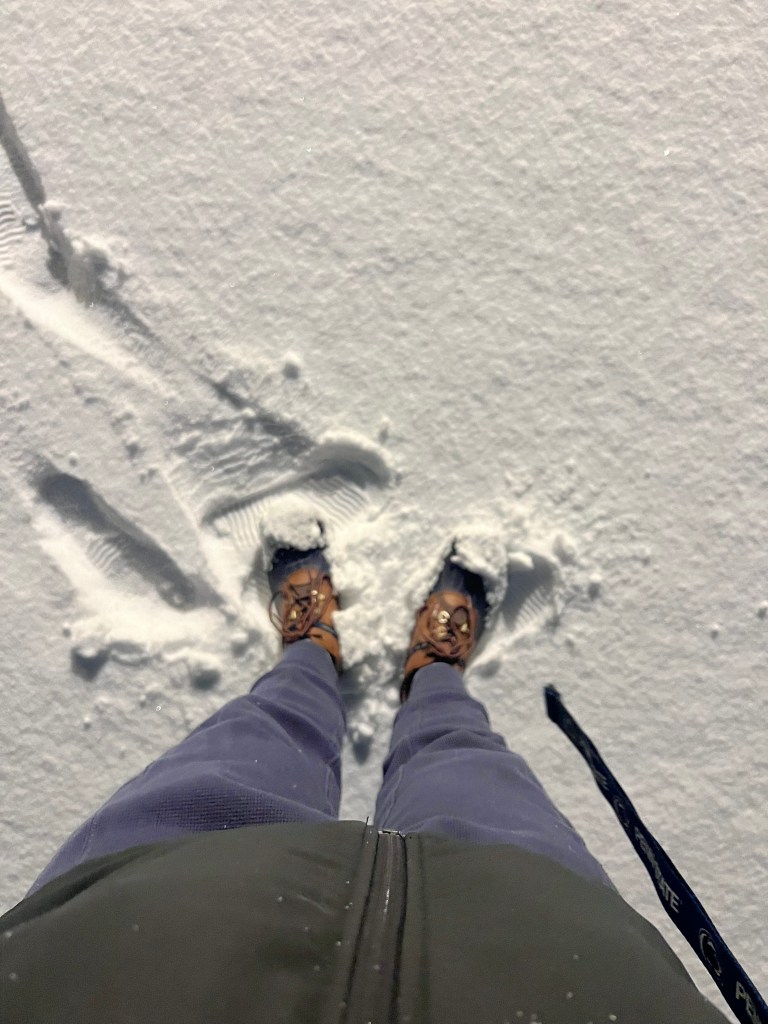 So add all of those winter things to 6 days alone in the woods as a woman. It’s quiet and lonely. I’m on edge because everything is unfamiliar and uncertain. The heavy winds cause a lot of noises outside. “Was that thump from the wind? Or is someone out there?” And, “Why are the dogs growling at the window in the pitch black?”